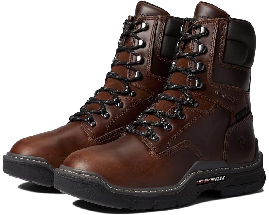 Get ready for outdoor adventures wearing the Wolverine® Raider Durashocks® 8″ Waterproof Shoes. SKU: #9631053Style no: W210112-230.Soft toe meets ASTM F2892-18a EH (Electrical Hazard) standards.Wolverine Durashocks Flex™ rubber lug outsole.Full-grain leather upper.Moisture-managing mesh lining.Removable full-cushioned insole.Wolverine Durashocks Flex™ construction engineered for flexibility.Classic lace-up closure. Round toe and lug platform heel. Signature brand name logo patch on the heel counter and upper. Advanced comfort PU midsole. Wolverine DuraShocks® Flex absorbs shock and grips the ground.Imported. Product measurements were taken using size 10, width D – Medium. Please note that measurements may vary by size.Weight of footwear is based on a single item, not a pair.Measurements: